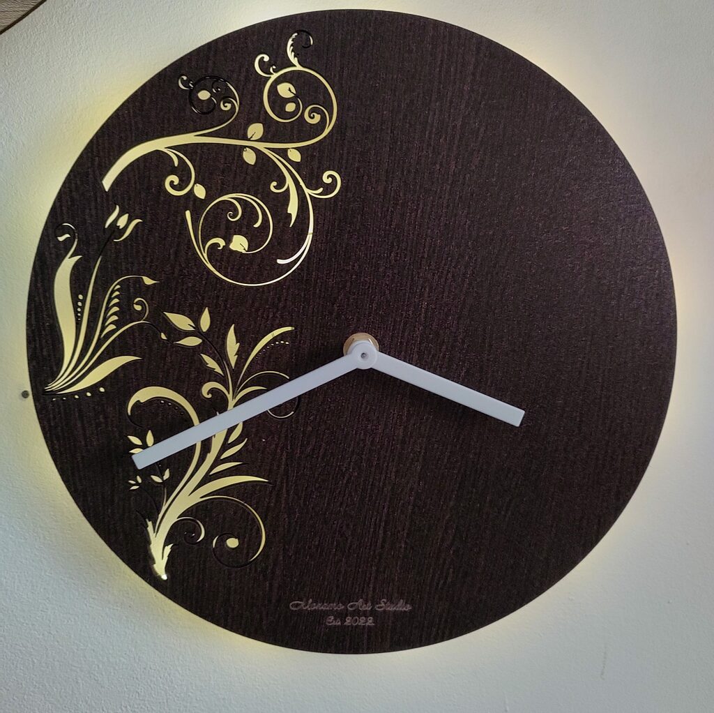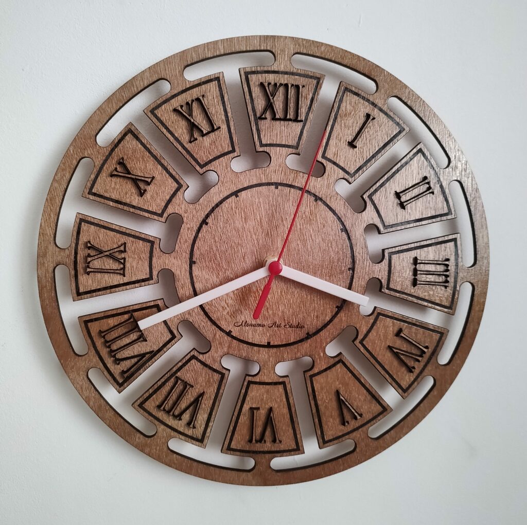 Monamo Art studio izrađuje zidne satove u više verzija. Možemo ih raditi iz jednog sloja sa gravurom po Vašoj želji, sa isecanim motivima ili iz više slojeva.