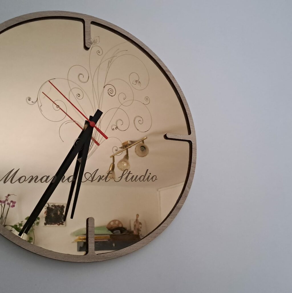 Monamo Art studio izrađuje zidne satove u više verzija. Možemo ih raditi iz jednog sloja sa gravurom po Vašoj želji, sa isecanim motivima ili iz više slojeva.